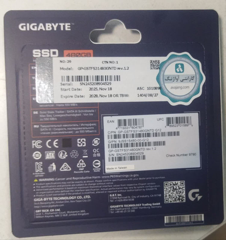 هارد اس اس دی گیگابایت 480 گیگ با گارانتی 3 ساله اصلی